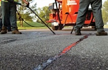Если дорожное покрытие нуждается в герметизации трещин, эту работу следует проводить весной или осенью, когда трещины не полностью раскрыты (как зимой) и не закрыты (как летом). Не наносите слишком много герметика и следите за тем, чтобы он не стекал и не образовывались лужи. Чтобы избежать стекания и избыточного нанесения, используйте насадку с ограничителем.