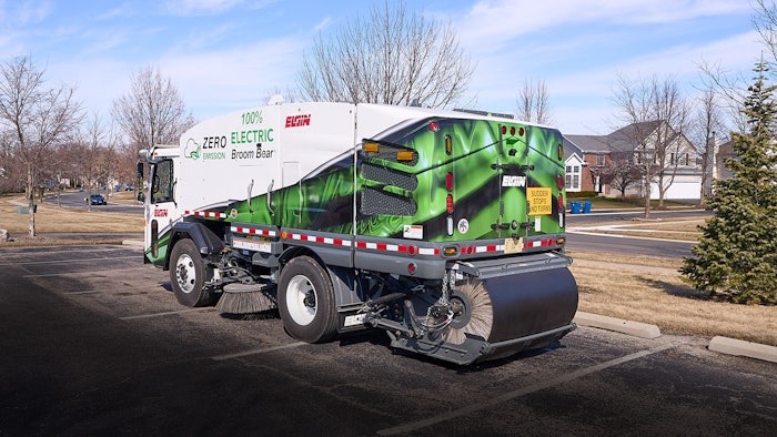 Электрическая метла Elgin Electric Broom Bear, устанавливаемая на грузовик, использует полностью электрическое шасси, обеспечивая ту же производительность, что и стандартные модели Broom Bear.