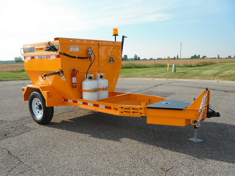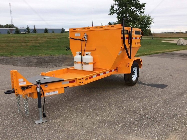 KM 4000T — это 2-тонный термос бункер для горячего асфальта с подогревом, установленный на прицепе